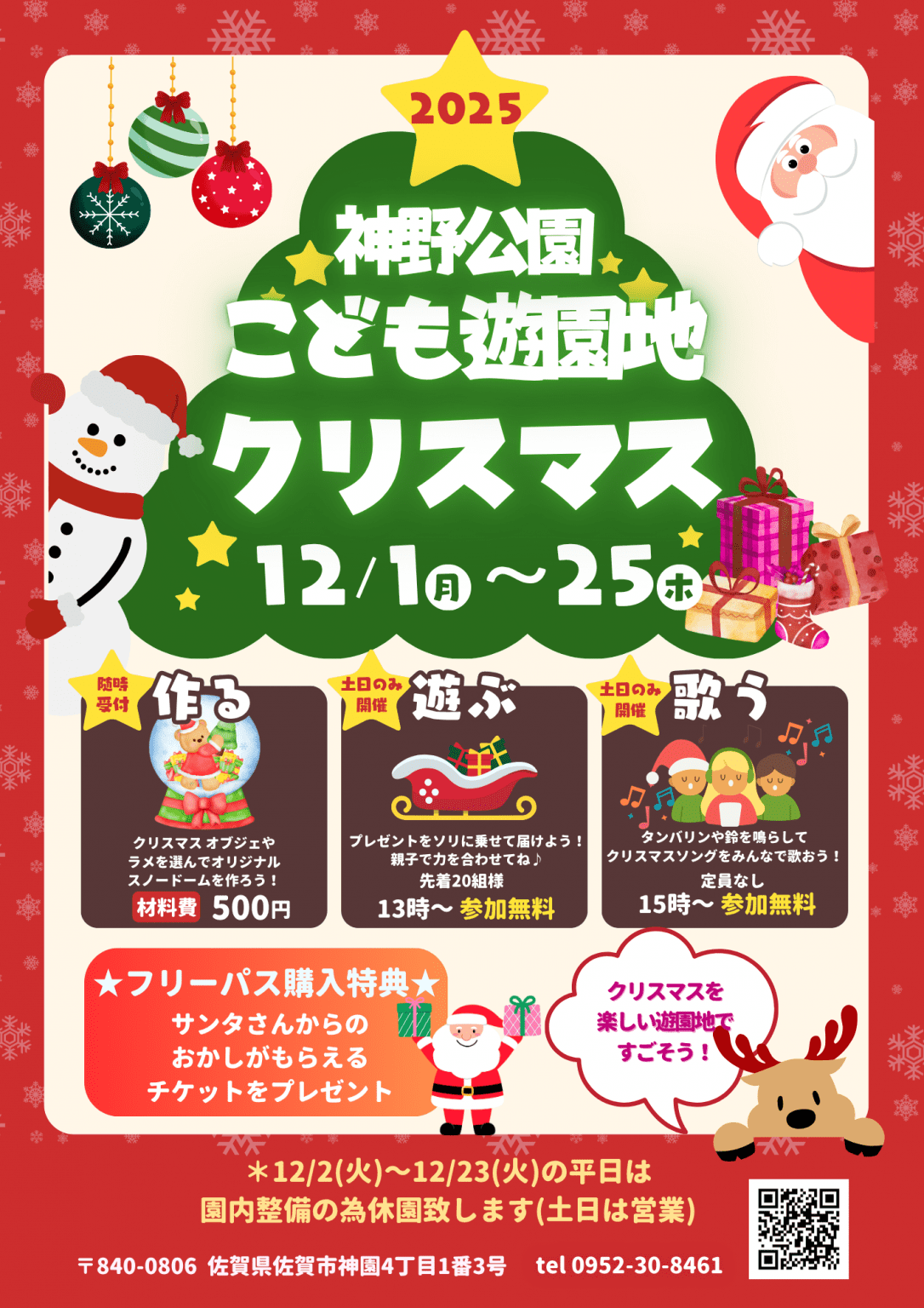 神野公園こども遊園地では「クリスマス」イベント開催中!クリスマスを楽しい遊園地ですごそう!