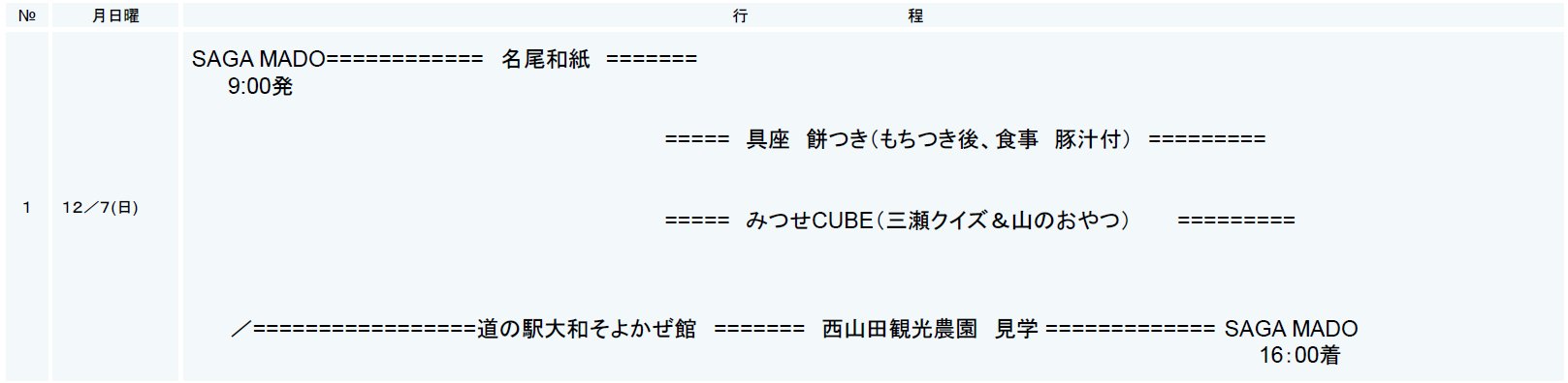 ■添乗員:出発地の佐賀駅バスセンターから到着地の佐賀駅バスセンターまで同行します。