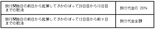 ※取消料の対象となる旅行代金とは表記の旅行代金に追加代金を加えた合計額です。