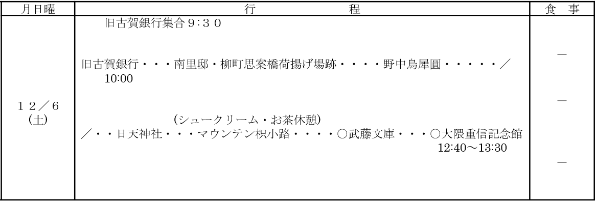| 旅行代(お一人様) | 参加費 お一人様 500円(大隈重信記念館入館料他含む) |