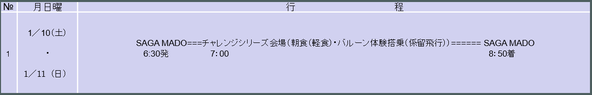 旅行期間 令和8年1月10日(土)・11日(日)