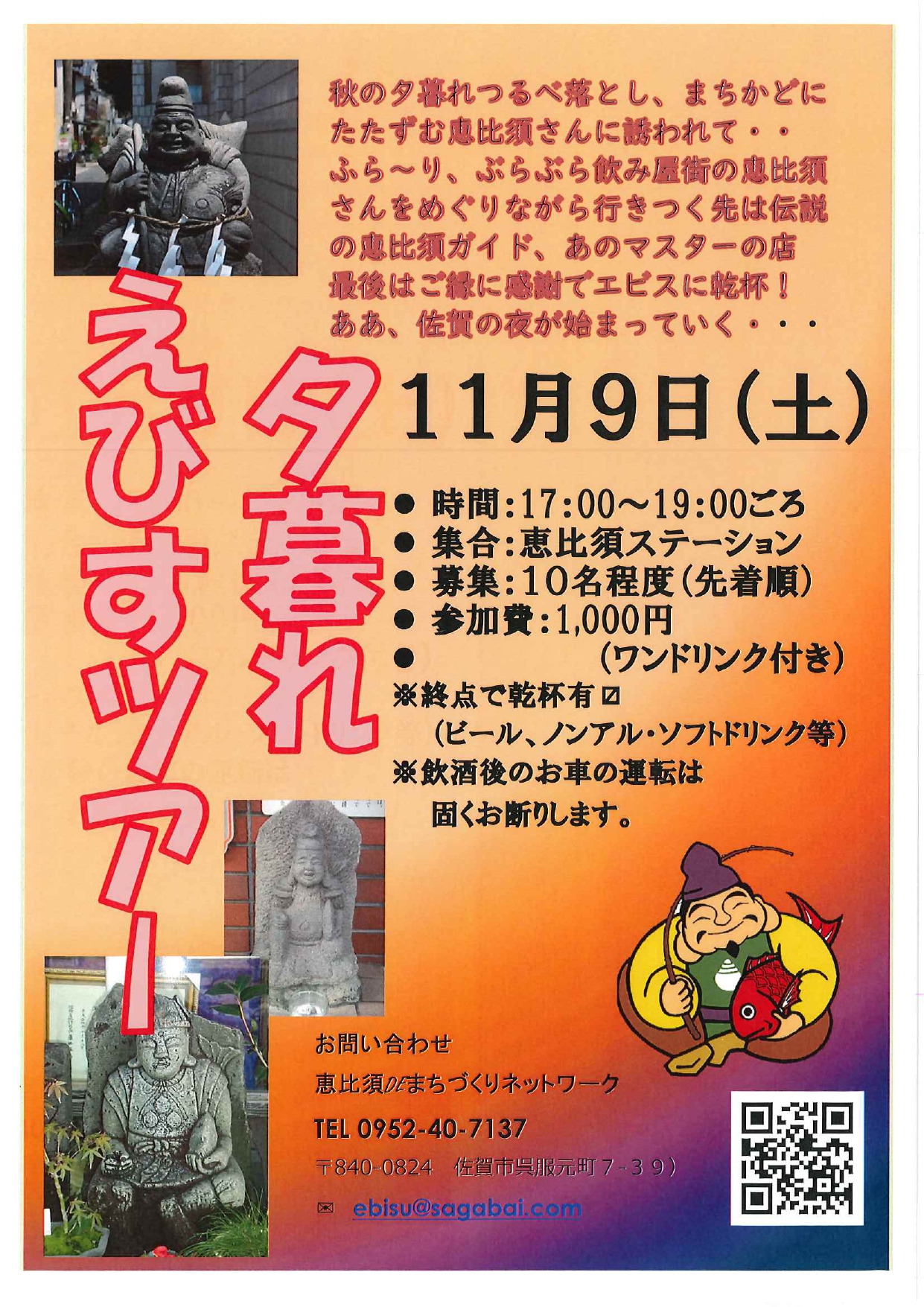 秋の夕暮れつるべ落とし、まちかどにたたずむ恵比須に誘われて・・・