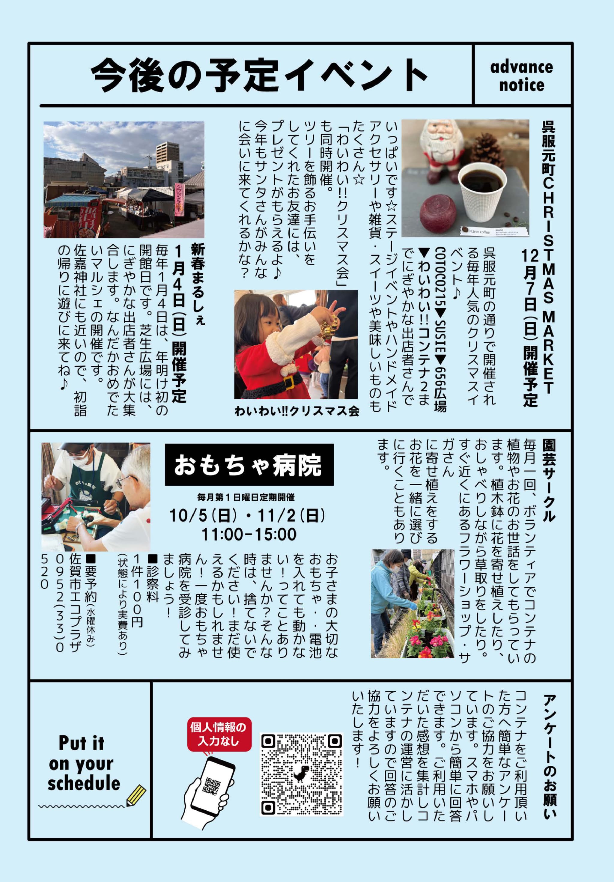 わいわい!!コンテナ2 090-9586-9445(直通) 【事務局】 NPO法人まちづくり機構ユマニテさが 0952-22-7340