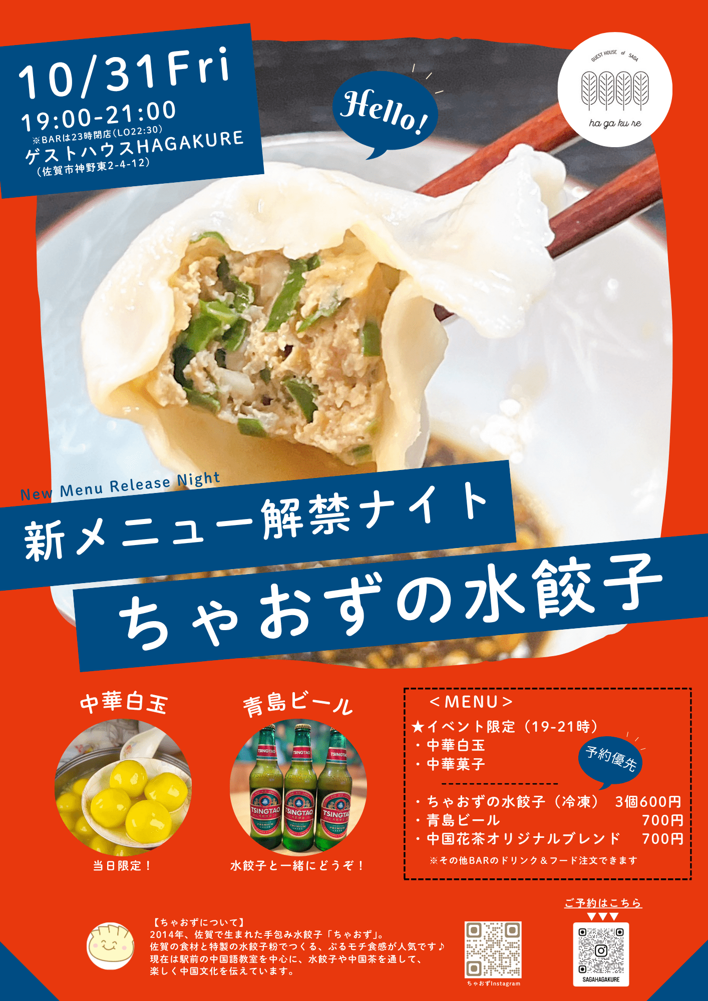 佐賀生まれの手包み水餃子「ちゃおず」と一緒に、楽しい夜を過ごしましょう♪