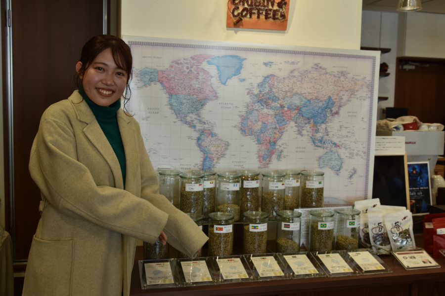 お店では煎りたて・挽きたてのコーヒー豆を販売しています♪