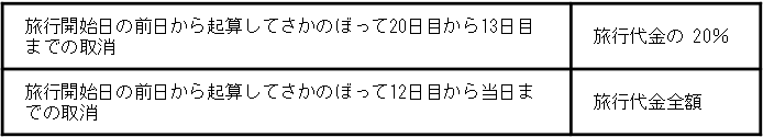 ※取消料の対象となる旅行代金とは表記の旅行代金に追加代金を加えた合計額です。