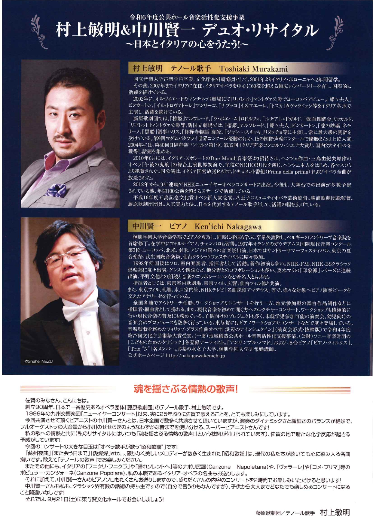 オペラ歌手が歌う昭和歌謡と、情熱のカンツォーネ!