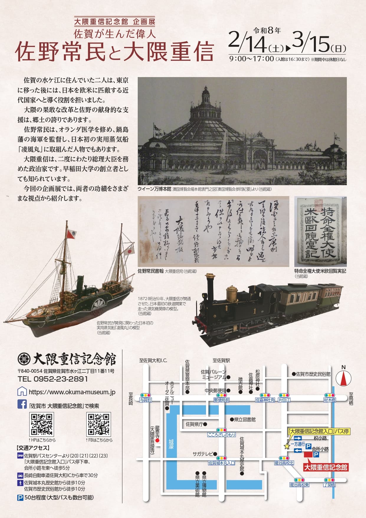 大隈重信記念館では企画展「佐賀が生んだ偉人 佐野常民と大隈重信」を開催。