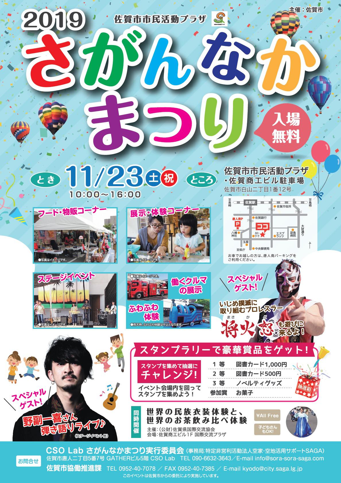 11月23日(土・祝)10時から16時まで、「佐賀市市民活動プラザ」で市民活動を楽しく身近に感じていただけるようなおまつりを開催します!