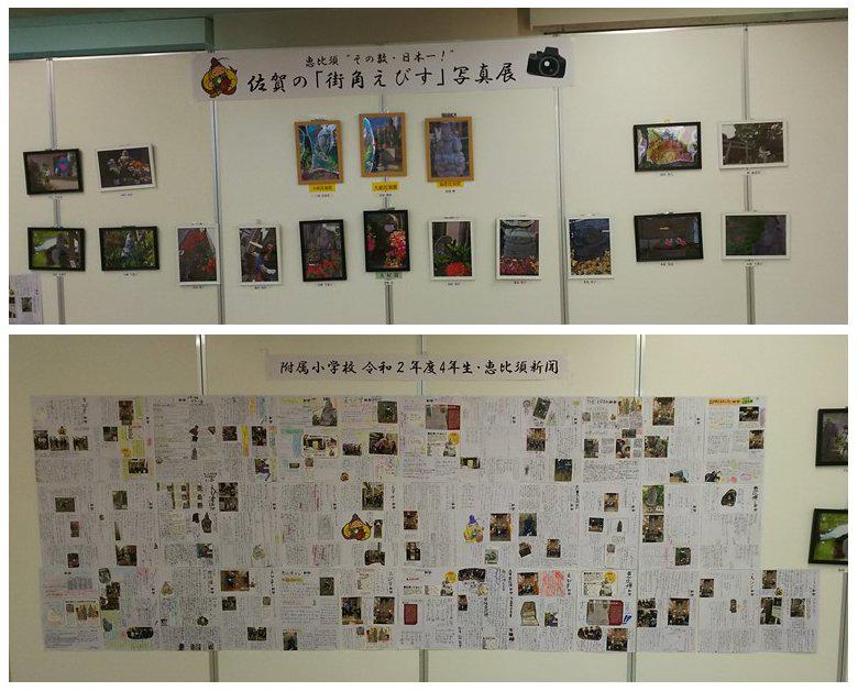 えびすさんフォトコンテストに応募していただいた作品と付属小学校4年生が作成した「恵比須新聞」を展示しています。