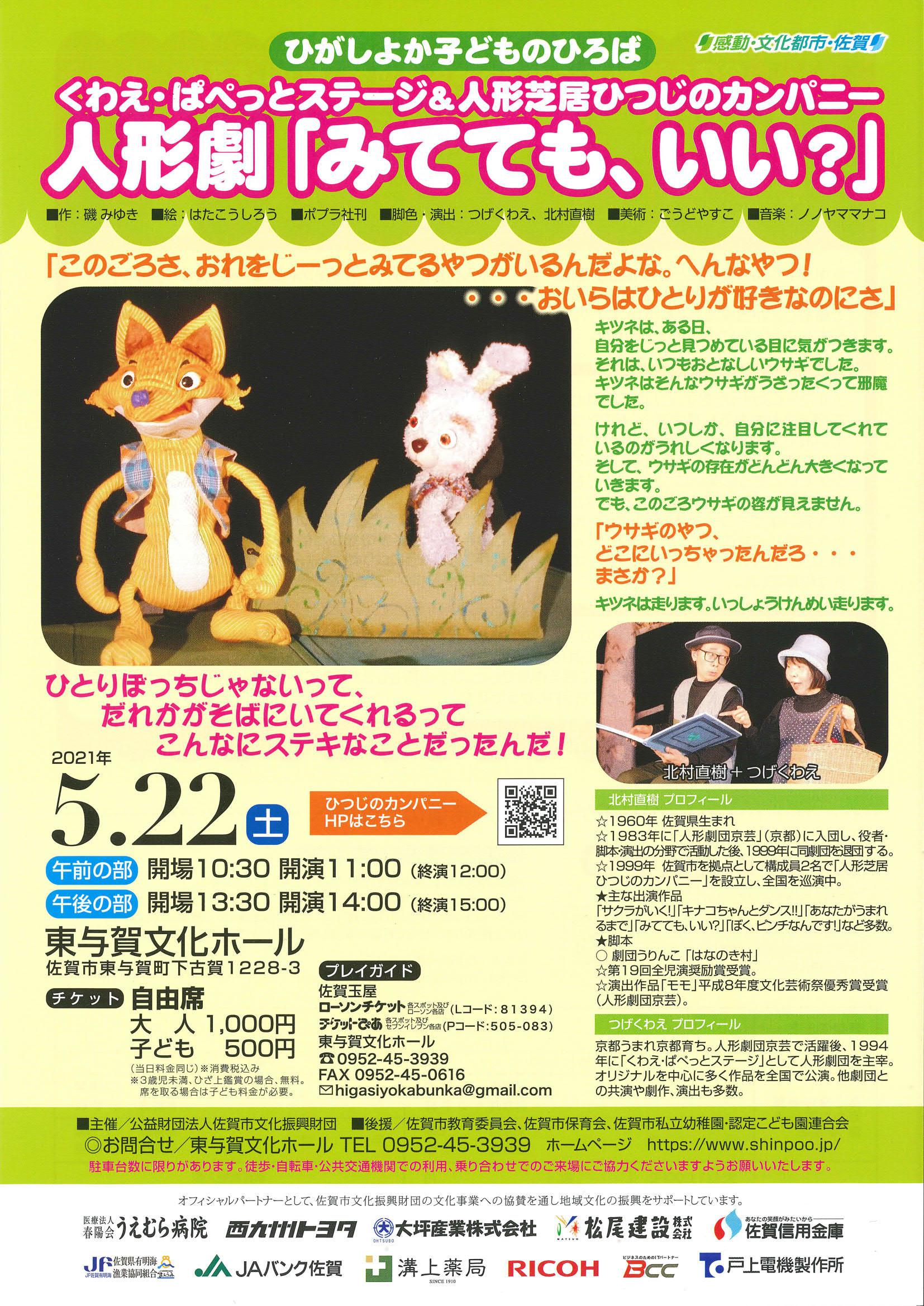 佐賀市出身で佐賀を拠点に人形芝居「ひつじのカンパニー」を主宰する北村直樹さんと京都在住の陽気なつげくわえさんによる人形劇「みてても、いい?」